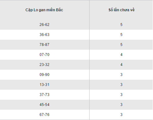 Hôm qua là một ngày đẹp trời với XSMB, bảng kết quả loto gan miền Bắc có sự chuyển dịch một chút về cả vị trí và có sự xuất hiện thêm mới của cặp 26 và sự ra đi của cặp 81. Cặp 38 vẫn giữ nguyên vị trí đầu bảng khi sở hữu tới 13 lần quay chưa về. Liệu hôm nay, kết quả XSMB có đem lại sự thay đổi khả quan hơn cho các cặp loto gan có mặt trong bảng hay không? Hãy cùng chờ đón nhé !