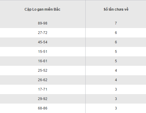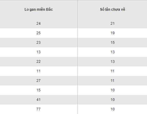 Hôm qua ngày 19/10/2016, bảng kết quả loto gan XSMB có chút thay đổi nho nhỏ khi cặp gan 58 đã biến mất khỏi bảng, thay vào đó là cặp 77 với 10 lần quay chưa về. Cặp số 24 vẫn duy trì thứ hạng quán quân trên bảng với tận 21 lần quay chưa về. Độ gan lì của cặp này đúng là khá cao đấy. Hi vọng vào kết quả XSMB sẽ đem lại những điều bất ngờ và khả quan hơn cho các cặp loto gan có mặt trong bảng nhé !