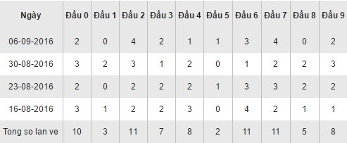 Bảng thống kê các cặp loto theo đầu số trên đây của XSBTR trong 30 ngày gần nhất cho ta thấy, đầu 2,6 và 7 đang giữ ưu thế với 11 lần xuất hiện trên bảng kết quả, trong đó mỗi đầu có được một ngày thăng hoa nhất với 4 lần góp mặt. Theo ngay sau là đầu 0 chỉ kém hơn có 1 lần xuất hiện. Các đầu còn lại số lần về khá ảm đảm, xếp chót khi chỉ sở hữu cho mình 2,3 lần về trong tháng đó là các đầu 5 và 1.