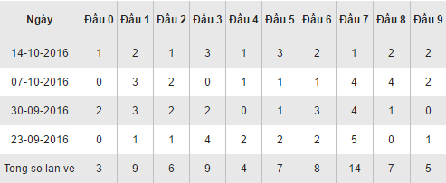 Thống kê loto theo đầu số XSNT hôm nay ngày 21/10/2016