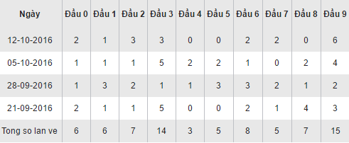Thống kê loto XSCT về theo đầu số hôm nay ngày 19/10/2016