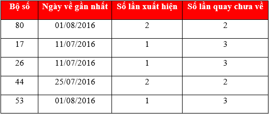 Trong đó cặp số 44 và 80 với tần suất xuất hiện là 2 lần. Cặp số này cũng có số lần quay chưa về là 2 lần, ngang bằng với số lần về.