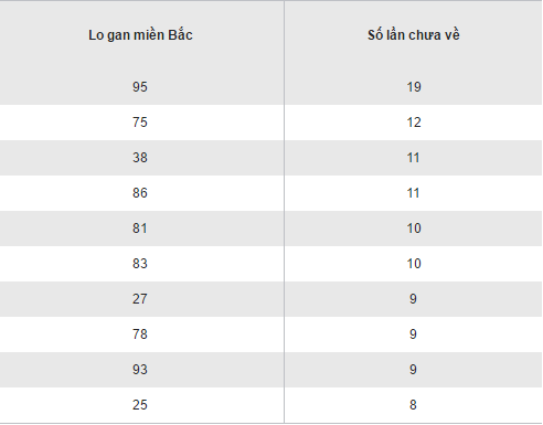 Thống kê loto gan XSMB thứ 3 ngày 27/09/2016
