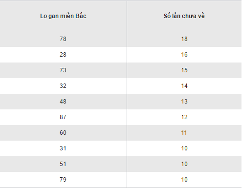 Thống kê loto gan XSMB thứ 5 ngày 6/10/2016