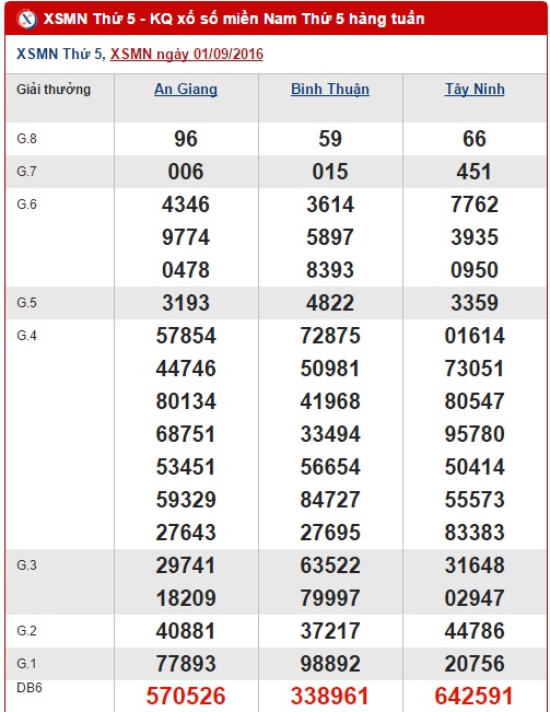 Trong khi chờ đợi kết quả XSMN hôm nay tại các đài An Giang, Bình Thuận và Tây Ninh, anapaolaagudelo.com xin mời quý vị và các bạn cùng chúng tôi điểm lại tình hình xổ số Miền Nam ở lần quay trước ngày 01/09/2016 nhé !