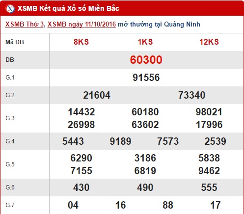 Hôm nay thứ 4 ngày 12/10/2016, lượt quay thưởng của XSMB sẽ được tiến hành lúc 18h15, mở thưởng tại tỉnh Bắc Ninh. Sau đây, anapaolaagudelo.com xin gửi đến bạn đọc nội dung bài tổng hợp, phân tích kết quả XS miền Bắc trước giờ quay thưởng nhé. Trước tiên, cùng review lại bảng kết quả hôm qua ngày 11/10/2016!