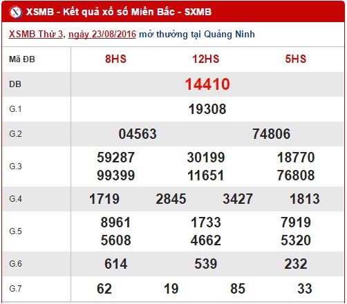 Kết quả XSMB hôm qua gây nhiều bất ngờ với sự xuất hiện liên tục của các loto đầu 1. Liệu rằng hôm nay đầu 1 có còn giữ vững phong độ không? Hãy chờ đón kết quả quay thưởng vào chiều nay nhé, còn bây giờ như thường lệ sẽ là bài tổng hợp, phân tích kết quả Xo so miền Bắc hôm nay ngày 24/08/2016. Trước tiên cùng nhau review kết quả XSMB hôm qua ngày 23/08/2016 nhé !
