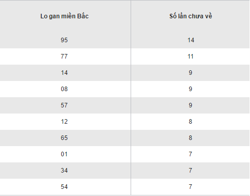 Thống kê loto gan XSMB thứ 5 ngày 22/09/2016