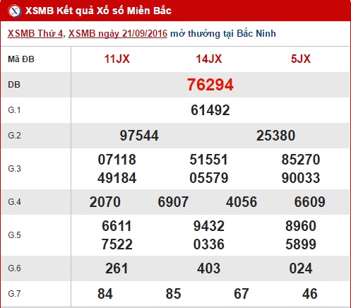Như thường lệ hôm nay thứ 5 ngày 22/09/2016, XSMB mở thưởng tại thủ đô Hà Nội lúc 18h15 chiều nay. Trong khi chờ đợi kết quả quay số chiều nay, hãy cùng anapaolaagudelo.com đi vào nội dung tổng hợp, thống kê và phân tích kết quả XSMB quen thuộc hàng ngày trước giờ quay thưởng hôm nay. Trước tiên, hãy cùng điểm lại những con số đã góp mặt trong bảng kết quả ngày hôm qua 21/09/2016 nhé !