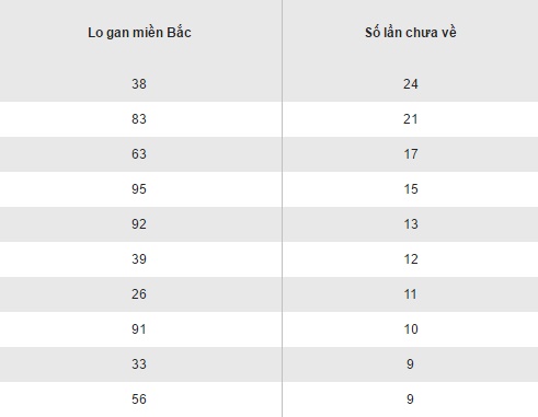 Thống kê loto gan XSMB thứ 5 ngày 28/07/2016