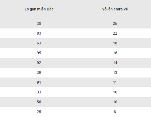 Thống kê loto gan XSMB thứ 6 ngày 29/07/2016