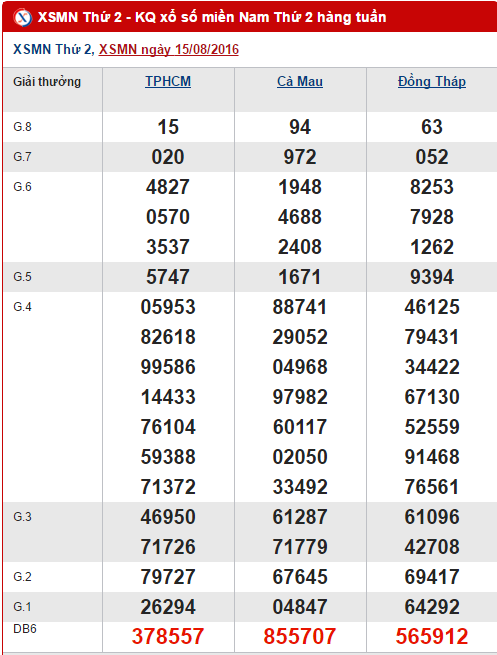 Hôm nay, những vòng quay của XSMN sẽ trở lại với các tỉnh Đồng Tháp, TP.HCM, Cà Mau và như thường lệ, mời quý vị và các bạn cùng anapaolaagudelo.com điểm lại tình hình kết quả xổ số Miền Nam ở lần quay trước ngày 15/08/2016 nhé !