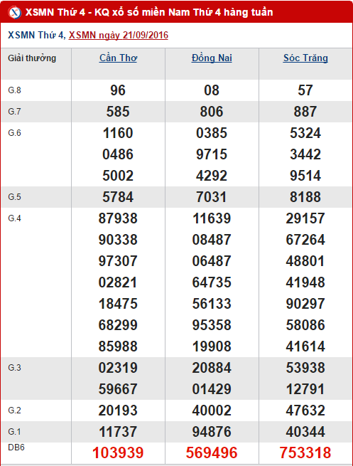 Tổng hợp số liệu kết quả XSMN hôm nay thứ 4 ngày 28/09/2016