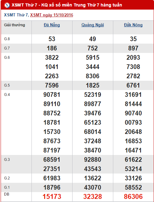 Đến hẹn lại lên, hôm nay đã là ngày cuối tuần thứ 7 ngày 22/10/2016, xổ số miền Trung trở lại với các tỉnh Đà Nẵng, Quảng Ngãi và Đắk Nông. Mời các bạn cùng chúng tôi điểm lại kết quả XSMT lần quay trước và 30 ngày trở lại đây nhé !