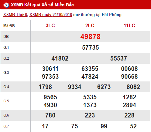 Như thường lệ, trước giờ quay thưởng xổ số miền Bắc ngày hôm nay 22/10/2016, anapaolaagudelo.com xin mời quý vị và các bạn cùng theo dõi bài tổng hợp, thống kê chi tiết kết quả XSMB trong 30 ngày gần đây nhất tính đến hôm nay. Trước hết, hãy cùng nhau điểm qua tình hình các bộ số may mắn góp mặt trong bảng kết quả ngày hôm qua 21/10 nhé !