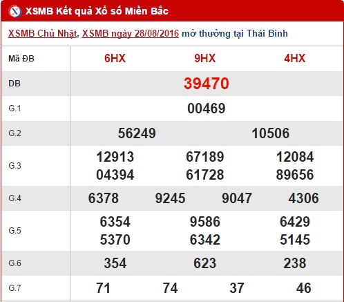 Tổng hợp, thống kê kết quả XSMB hôm nay thứ 2 ngày 29/08/2016