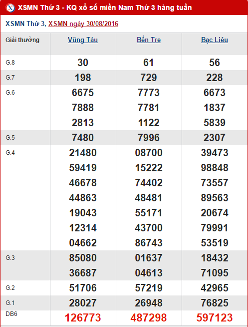 Hôm nay thứ 3 ngày 06/09, lượt quay của XSMN sẽ diễn ra đồng loạt tại các tỉnh Vũng Tàu, Bến Tre và Bạc Liêu. Sau đây, anapaolaagudelo.com xin gửi đến các bạn nội dung bài tổng hợp, phân tích KQXS miền Nam hôm nay mở đầu bằng bảng review kết quả lần quay trước.