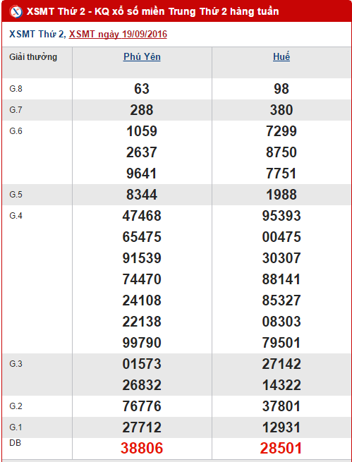 Như thường lệ, hôm nay Xổ số miền Trung sẽ mở thưởng tại các tỉnh Phú Yên và Thừa Thiên Huế lúc 17h15. Trước khi đến với kết quả quay thưởng chiều nay, anapaolaagudelo.com xin gửi đến các bạn bài tổng hợp và phân tích kết quả miền Trung lần quay trước ngày 19/09/2016 nhé !