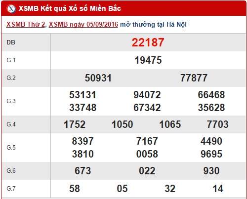 Kết quả XSMB ngày hôm qua chắc hẳn đã để lại cho anh em chơi số nhiều cảm xúc vui buồn lẫn lộn. Liệu hôm nay kết quả có tiếp tục mang đến những bất ngờ thú vị nào nữa không, hãy cùng chờ đón nhé! Sau đây như thường lệ, trước khi đến với kết quả quay thưởng hôm nay của XSMB, anapaolaagudelo.com xin gửi đến các bạn nội dung bài tổng hợp, phân tích kết quả xổ số miền Bắc hôm nay ngày 06/09/2016.