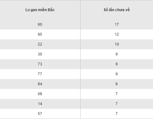 Thống kê loto gan XSMB thứ 3 ngày 13/09/2016