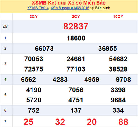 Trước tiên, hãy cùng điểm lại tình hình kết quả XSMB ngày hôm qua 03/08/2016.