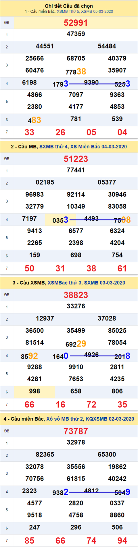 | Thống kê XSMB thứ 6 ngày 06/03/2020 |